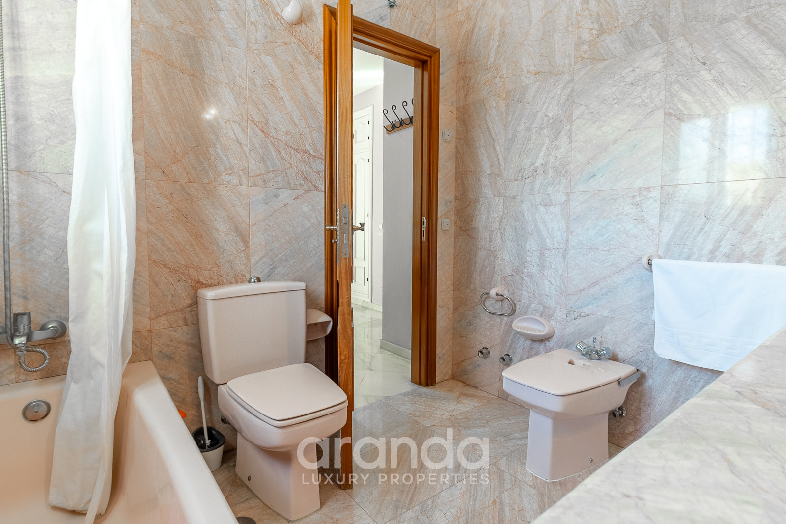 - Semisótano, 70 m2, apartamento independiente con 2 dormitorios, 2 baños, salón y cocina. Salida directa al jardin, a la zona de barbacoa con comedor exterior y a la piscina.